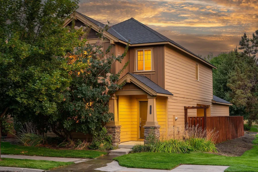 Lovely home located in the Fieldstone Crossing neighborhood nestled in a park like setting next to a maintained green space, trail and canal! Enjoy the privacy without the yard work and more free time to enjoy all that Central Oregon has to offer. Inside, an open floor plan on the main level that offers a raised breakfast bar between kitchen and dining area and a cozy corner set gas fireplace in the living room. Newer carpet installed downstairs in 2022. Gated, private side patio ready for a BBQ setup or a beautiful potted garden area. The upstairs primary bedroom has peek-a-boo mountain views! Two additional bedrooms, a nice linen closet and another full bathroom. Roof replaced in 2017. Pool access and a park located right of the back alleyway! This would make a great investment property or perfect for a first time home buyer! Turnkey and in great condition! Schedule a tour today!