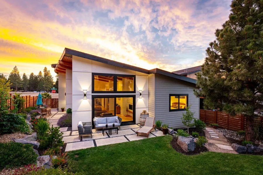 Stunning custom home by Greg Lockridge blends thoughtful design, quality craftsmanship, and unbeatable access to Bend's best amenities. Built in 2022, this light-filled retreat features a vaulted great room, hickory floors, granite counters, Italian polished stone backsplash, and a sleek modern fireplace with dimmable lighting. The main-level primary suite offers a soaking tub and walk-in shower, while expansive windows invite the outdoors in. Set on a corner lot with three sides of usable outdoor living, the home is fully landscaped with native plantings, sprinklers, and drip system. Energy-efficient features include on-demand water heater and A/C. Sitting in one of Bend's premier locations, you are just minutes to downtown and the Old Mill, with trails to the river, Good Dog Park, and Phil's Trail system. Quick access to Mt. Bachelor and the Cascade Lakes. The planned neighborhood acro...