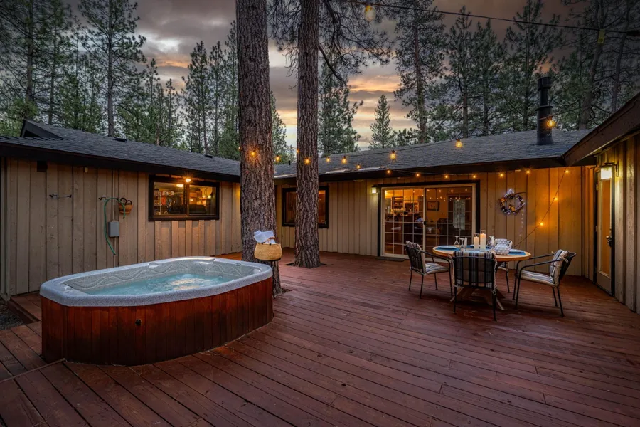 Seller-carry term available. Coveted Tollgate neighborhood of Sisters in this 2216 sf single-level retreat on .66 AC! Find ample space w/ 3 bedrooms, a dedicated work-from-home office, and 3 bathrooms. Unlock the possibilities with the primary suite's private entrance/lock-off potential- perfect for guests! Sun-drenched days unfold in the vaulted great room with wood ceilings, skylights, hardwood floors, and a cozy propane fireplace. The spacious kitchen showcases granite countertops, wood cabinets, and storage. Cozy up in the separate living room, anchored by a classic wood-burning fireplace with a stone surround. Step outside to your oversized covered porch and envision lazy afternoons. The expansive wood deck beckons for gatherings, complete with a relaxing hot tub under the Oregon stars. Parking is a breeze with both paved and gravel parking space options. And the Tollgate lifestyle?...