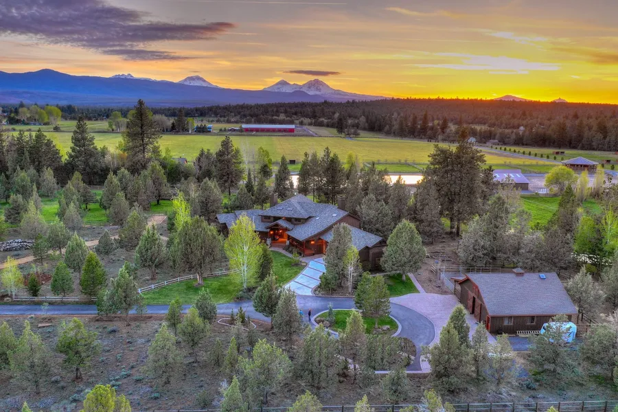 Privacy and seclusion await in this stunning Tumalo acreage horse property. 5.23 acres of fenced, treed land with underground irrigation, and big Cascade Mountain views. Built by Sun Forrest Construction, this immaculate home features, large timber framed accents, a grand great room with large stone fireplace and a main level master as well as many recently updated finishes in the kitchen and bathrooms. The barn features 3 horse stalls, storage an office and unfinished flex space above, plus an outdoor corral. This home is truly a masterpiece. Too many other features to mention.