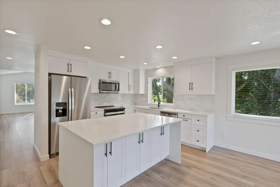 Discover refined multi-generational living in this fully remodeled home on a premier .40-acre corner lot. Best deal at just $347 per sq foot! Both levels of this home can be entered with zero steps. Thoughtfully designed with two full kitchens and two garages, this residence offers versatility and elegance throughout. The private lower level features its own entrance, garage/storage area, 3 bedrooms, 2 baths, kitchen, laundry rm, and patio area--perfect for extended family or guests. Septic was cleaned/pumped/inspected in Oct 2024 (concrete tank!), there is a newer roof, and new upper deck ensuring comfort and peace of mind. With space for an RV or boat and expansive outdoor parking, this home blends function with sophistication. Ideally located near Costco, shopping, and all of Bend's finest amenities, it is truly a rare find. Book your showing today! Mortgage savings may be available ...
