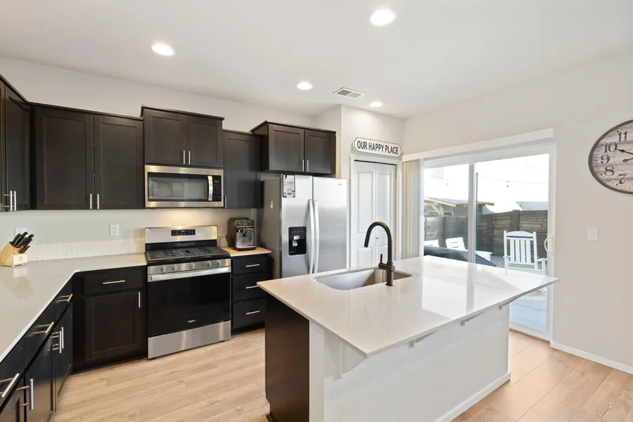 Move in ready and priced to sell! This well maintained home is ready for you and your crew! With 5 bedrooms including one on the main level, there is room for everyone! The stylish kitchen is the heart of the home--complete with a large island, quartz countertops, abundant cabinetry, a pantry, and plenty of space to gather. The open living area is warm and welcoming, with a cozy gas fireplace for those relaxing evenings. Step outside to a landscaped grass backyard with an extended patio, cedar garden boxes with drip irrigation and, in-ground poles for string lights for year round enjoyment! Centrally located and close to everything: under 2 miles to the Old Mill District, 2.5 miles to the upcoming Central Oregon Library (2026), and just 3 miles to downtown Bend. Located in the sought-after Stone Creek neighborhood--featuring Silver Rail Elementary, a private pool, and a 6-acre park.