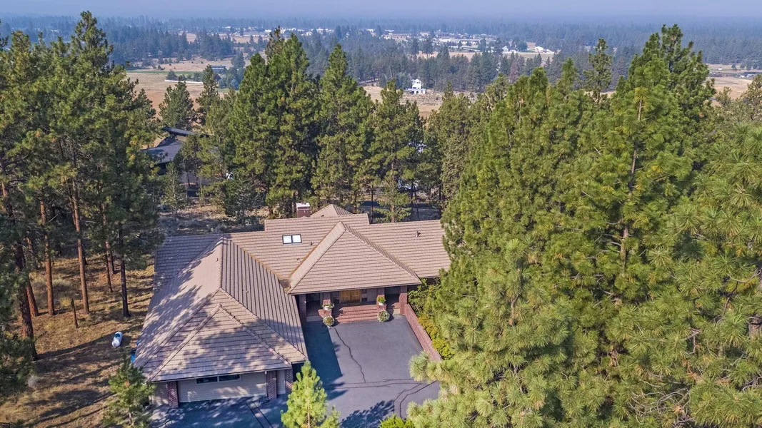 Cascade Mountain Views through the pines on prestigious McKinney Butte overlooking Sisters, Oregon! 3 bed, 2.5 bath 3,444 SF single-level home + studio/full bath in RV shop. Located 7 minutes from downtown Sisters, this 4.81-acre property offers the perfect blend of serene living and accessibility to local amenities. Thoughtful design has 2 ensuite bedrooms in private wings, providing owner and guests privacy and comfort. Living and family rooms have Salishan stone fireplace surrounds. Kitchen and dining rooms open to the sunroom with vaulted ceilings. The heart of this home extends to the outdoors: the wrap-around deck provides a picturesque venue for basking in vibrant sunrise and sunset hues. Park 6+ cars: 3-car attached garage + large shop w/ RV parking and a studio/office with a full bath. Experience the allure of Sisters, Oregon, from the comfort of this thoughtfully designed single-level home, where modern convenience and natural beauty coalesce in perfect harmony.