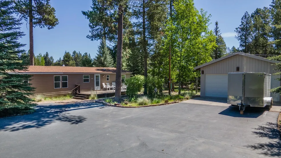 This is a one of a kind 1.03 acre lot on the Big Deschutes River with Dock located in Oregon Water Wonderland on a paved street, community water and sewer. This home sets 40 feet off the River Bank giving it a unique grandfathered setback from the river. This is a 1980 2 bedroom 2 bath manufactured home offering 1344 sq. ft of living and has been well cared for. There is also an 854 Sq. Ft detached garage with a asphalt driveway. Just minutes away from Sunriver, Mt. Bachelor and the High Cascade Lakes.