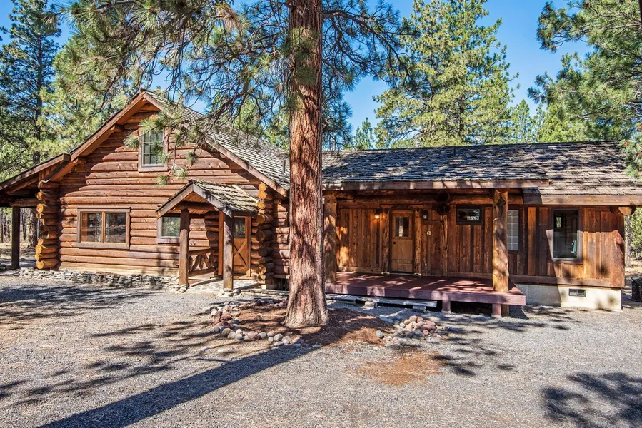 Cabin in the Woods! Located on 10 private acres bordering national forest, this 1,924 SF log home in Sisters, Oregon brings the outdoors in. Hand hewn logs insulate and impart a fresh woodsy scent. 2 fireplaces and heated tile floors provide warmth. The great room has a floor-to-ceiling stacked rock hearth surround quarried in Oregon. Open floor plan, vaulted wood ceilings, log posts & cross beams, & birch wood floors. Updated kitchen includes granite countertops, breakfast bar, cherry cabinets, limestone floors, wine storage, plus stainless-steel appliances: refrigerator, 5-burner propane cooktop, oven, microwave, & dishwasher. The great room bookcase conceals a secret entrance to the main level sleeping quarters: 2 bedrooms and 2 updated baths on with hardwood and radiant heat tile floors. Upstairs, the 388 SF carpeted loft/3rd bedroom overlooks the great room. 320 SF cabin has a ro...