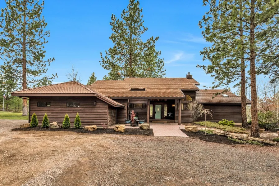 Spacious custom home on nearly 15 acres with end-of-road gated privacy, in a quiet park like setting. At nearly 4,500 sf and featuring two main-level master suites, this home has room for all. Warm and inviting with log accents, solid wood doors, Brazilian cherry floors, and large windows that offer an abundance of natural light throughout. The kitchen features granite countertops, custom built-ins, and a large island that overlooks the vaulted great room with a rock fireplace. As you walk through the solarium and enter the primary master suite you feel a true sense of privacy and serenity. This suite features his and hers walk-in closets, fireplace, and a spacious bathroom with a claw foot soaking tub. Outside you'll love the large deck and paver patio that is perfect for summertime games, relaxing and entertaining. Additionally, the property is fenced and cross fenced with a 3-stall barn, 7 acres of irrigation rights, and just a stone's throw away to the Deschutes National Forest.
