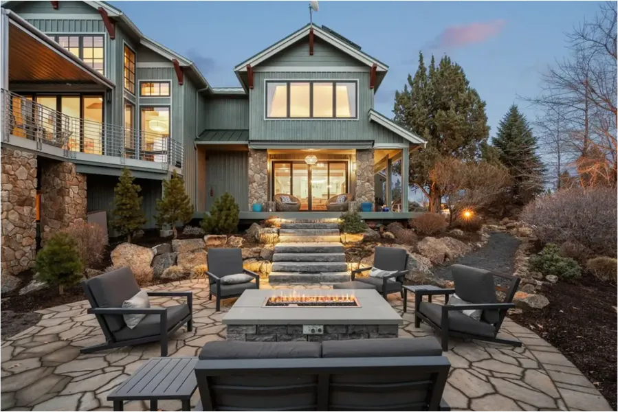 This stunning 4,832 sq ft contemporary estate, exquisitely remodeled in 2013, is a true sanctuary on 33 acres (22 irrigated). Designed for luxury and comfort, it features 5 spacious bedrooms, 4.5 elegant baths, and high-end finishes, including reclaimed Douglas fir flooring, exposed beams, and artisan-crafted Hubbardton Forge lighting. The gourmet kitchen boasts a 6-burner Viking range, walk-in pantry, and Miele double ovens. Enjoy breathtaking mountain views, a private waterfall, and beautifully landscaped outdoor spaces with a hot tub, fire pit, and outdoor fireplace. The 900 sq ft casita is perfect for guests or a home office, while the 750 sq ft barn and 800 sq ft shop provide ample storage. An equestrian's dream, it offers cross-fencing, paddocks, a large shelter, and a 22-zone Rain Bird system for lush pastures, currently used for hay production. Geo-thermal heated floors and 44 solar panels ensure efficiency. Just 40 minutes to Mt. Bachelor, this is Bend living at its finest!