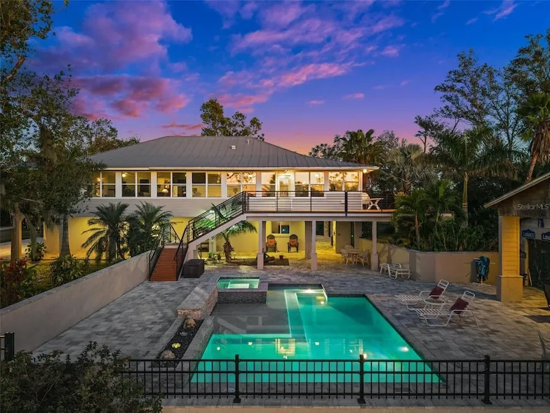 Live in COUNTRY PARADISE with this 4 Bedroom, 4.5 Bathroom + Bonus Room, Attached Garage, Pool home with a PRIVATE LAKE situated on 20+/- ACRES! Bring the animals or equipment. CLICK ON THE VIRTUAL TOUR LINK 1 FOR THE VIDEO AND VIRTUAL LINK 2 FOR THE 3D TOUR. This Key-West plantation style home features two separate living quarters with private entrances and tinted windows. The main living quarters are on the second floor and has an open floor plan, with TEAK Wood flooring, high & vaulted ceilings and MUCH MORE! A large open living room has a wood burning fireplace and flows with an open dining room and kitchen making entertaining friends and family seamless. The kitchen offers ALL stainless-steel appliances including a built-in convection oven, microwave and cook-top, granite countertops, island with storage, plenty of cabinets, breakfast bar and off kitchen formal dining room. The spacious master suite has HIS & HERS walk-in closets, a glass slider to the lanai and an on-suite bathroom with his and hers split vanities, walk-in shower, linen and water closets. On a split floor plan is the versatile guest bedroom with an attached bonus room with a walk-in closet and built-in desktop. The generously sized Florida room has a summer kitchen with a gas range, a heated spa and a mini split A/C unit. Sip your morning coffee or unwind with your favorite evening beverage on the upper deck while enjoying the GORGEOUS property views including the Lake and Pool! On the ground level you have the in-law suite where your guests can spend quality time with friends and family in an open living room with a wood burning fireplace and a full kitchen with ALL stainless-steel appliances, plenty of cabinets for storage, a breakfast bar and off kitchen dinette. A master suite has a walk-in closet with an attached half bathroom with the additional guest bedroom and full bathroom nearby. Guests can start their morning on the covered paver patio with an additional full guest bathroom with garage access. A private oasis awaits where you can take a dip in a heated pool & spa, with a Baja shelf, perfect for year round use, or you can soak up the sun from the pool deck! The 48x92 Pool house/Pole Barn has updated electric and is full of possibilities. 2023 SEPTIC TANK - 3 A/C UNITS W WARRANTIES - FENCED/CROSS FENCED LAND - DESIGNATED WORKING CATTLE PEN - ALUMINUM POWDER COATED STEPS/RAILS- 2022 POOL/ SPA + SALT WATER/ELECTRIC HEAT EQUIPMENT - 1 YEAR OLD WATER SOFTENER W CHLORINATOR - IRRIGATION AROUND HOME, DRIVE & ENTRY - PROPERTY BACKS UP TO PRESERVE. Conveniently close to I-75 and US-41 providing easy access to local shopping & boutiques, fine & casual dining, LIVE entertainment, and AWARD-WINNING BEACHES!! Schedule your showing TODAY!
