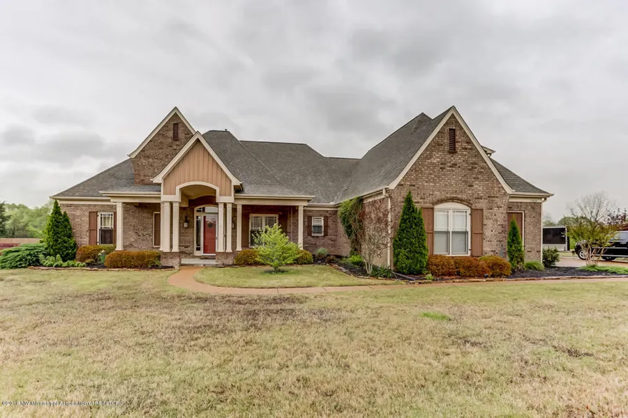 Corporate Relocation owned home! Beautifully maintained homes with many extra features. Tank-less water heater, screened sun-room, large outdoor patio, separate storage room behind bonus room that has heat/air and carpet. Kitchen has many upgrades and huge island with plenty of cabinet space, mudroom has storage area and desk. Two master bedrooms down, large walk-in closets Dining Room has custom molding, front of house has a large covered porch, nicely landscaped. Large level lot with some trees just across state line from Collierville. Very open floor-plan.