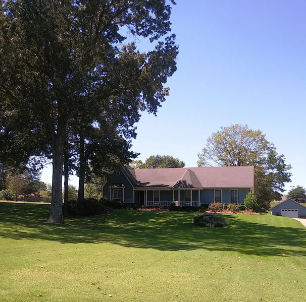 Lovely single level home on peaceful park like setting to enjoy the good life sitting on the front porch drinking sweet tea!! Featuring 3 bedrooms and 2.5 baths. Bedrooms are on a split plan and master has large en-suite with wonderful soaking tub. The large eat in kitchen has lots of cabinets with a center island and gas stove. There is a large laundry room and additional utility room for extra storage as well as several storage closets. Under the trees is a large workshop with 2 garage entrances. There is also a covered rear patio and deck for coffee time in the morning. It is in close proximity to restaurants and shopping in Olive Branch. Move in ready and waiting for you to call it Home!!