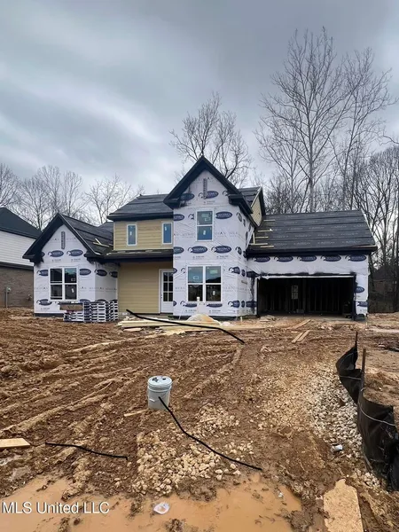 Come check out this gorgeous 4 bedroom/ 2 1/2 bathroom home tucked away in a cute , quiet little neighborhood in Olive Branch! You will encounter soaring ceilings as you first step into the home with a balcony overlooking the main living area!! This open floor plan offers a formal dining room, gas fireplace in the living room, eat in kitchen with a huge island, granite counter tops, stainless steel appliances and a pantry! Primary bedroom is on the main level with an ensuite bathroom featuring a double vanity, separate soaking tub and large walk in shower plus a walk in closet! There is a 1/2 bathroom by the laundry room on the main level!! Upstairs are three more bedrooms and a full bathroom!! Builder offering $10,000 concessions towards buyer closing costs, and ask about the current upgrade package!!