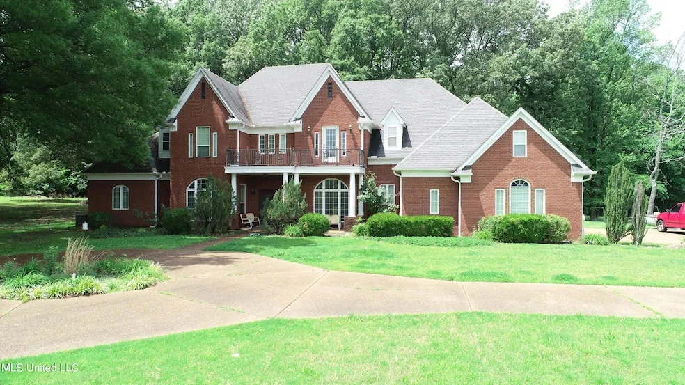 Welcome to this stunning property located in Hernando, MS, renowned for its excellent schools and beautiful surroundings. Situated on 4 acres of land, this estate boasts a flourishing orchard with a variety of fruit trees including apple, pear, peach, raspberry, and blackberries, providing a serene and bountiful environment. The 5700 square foot home is designed to invite natural light in through big windows, creating a bright and airy atmosphere throughout. With 5 spacious bedrooms, each accompanied by its own luxurious bathroom, this residence offers ultimate comfort and privacy for all occupants. Featuring 3 fireplaces, including one in the primary bedroom, warmth and coziness are guaranteed during colder months. The expansive walk-in closets provide ample storage space, while the game room and bonus room offer versatile spaces for entertainment and relaxation. The kitchen is a chef's dream with a gas cooktop, double ovens, and plenty of counter space for meal preparation. Additional highlights include a workshop in the garage, a laundry room with a convenient sink, a covered patio in the backyard for outdoor enjoyment, and an upstairs balcony providing panoramic views of the surrounding landscape. Don't miss the opportunity to make this property your own and experience luxury living in the heart of Hernando's charming community.