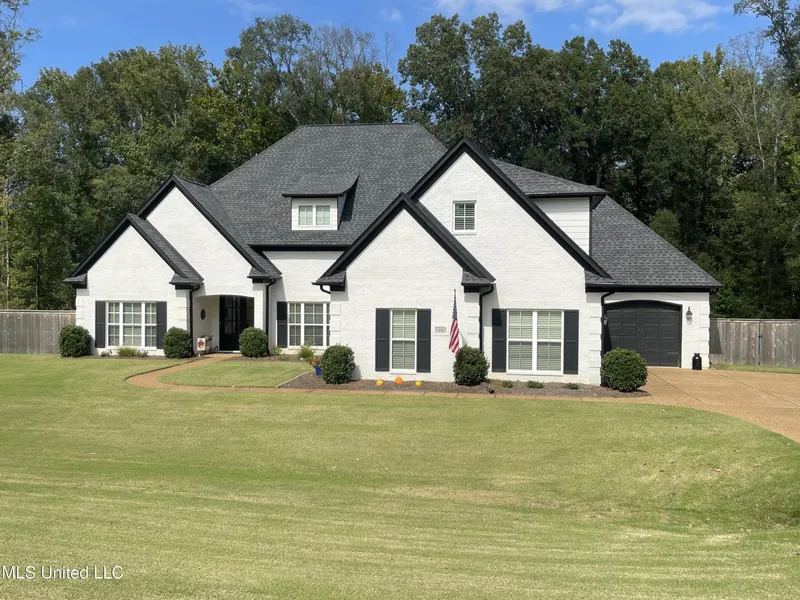Corporate Move/Relocation. This is your chance to own a Southern Style Farmhouse custom-built home in desirable Love Station, located in Top Rated Hernando/Desoto County Schools. Impeccably designed and loaded with custom upgrades, this like-new home offers refined living on a beautiful 1.57 acre partially wooded lot. The double glass panel door entry opens to a grand foyer leading to an open-concept great room and kitchen. Straight ahead is the great room with a gas fireplace, built-ins on each side, component nook, 12-foot vaulted ceilings, and exposed beams. The open concept living room flows seamlessly to the kitchen and windowed breakfast nook which includes farm finish paneling. There is a separate office/dining room that features barn doors that can be closed for privacy or intimate gatherings. The chef's kitchen showcases leathered granite counters, a farmhouse sink with sensor faucet, pot filler over the 5-burner gas stove, double ovens, Frigidaire refrigerator, and beautiful tile backsplash. The custom cabinets feature under cabinet lighting and under cabinet outlets. They also sit off the floor for easy cleaning and maintenance. The decorative vent hood matches seamlessly with the cabinets The extra quiet Bosch dishwasher can be run during a party without disrupting your guests. An enormous walk-in butler's pantry features a reclaimed swing door with plenty of additional counter space, shelves, and cabinets. The entrance by the garage opens to a mudroom with custom built cubbies. The half bath and laundry room, which includes the washer and dryer, includes a sink and extra closet, are both close by. Down the hall, you will find the Primary Suite. The primary salon style bath has a large walk-in shower with the tub enclosed, a double vanity, and a huge walk-in closet with mirror and built-ins. The large windows in the primary bedroom showcase stunning views of the private backyard. The secondary bedrooms in this split floorplan are opposite the primary suite. They feature a Jack and Jill bath with substantial walk-in closets for each and a linen closet to share. All closets have upgraded wood shelving. Up the wood tread staircase is a finished bedroom with a 3/4 bath. In the bath is the closet for the bedroom and door to the expanded attic. The floored attic houses the smart home hub, tankless water heater, HVAC units, and plenty of bonus walk out storage. Double French doors in the living area open to the over 13 x 20 screened patio with a tv hookup and beautiful views of the fenced backyard. Off the patio is a pad large enough for your grill and smoker. The extended two car garage has an 8-foot opening, utility sink, and is fully insulated with an additional storage room attached. The third garage has its own door and is fully insulated as well. Each of the garage doors has its own keypad. There is a generator disconnect and hookup outside the garage. The lighting fixtures were hand selected for the home and will go seamlessly with any decor. The home has a sprinkler system throughout which saves on yearly insurance. All the windows and doors are pre-wired for a security system. The gas line in the attic can easily be run to the outside for grill hookup. The driveway is extended for easy turn around and extra guest parking. The 1.57 acre lot is partially wooded. With no homes behind, lush trees, and so many thoughtful upgrades, this home blends luxury, functionality, and privacy in every detail.