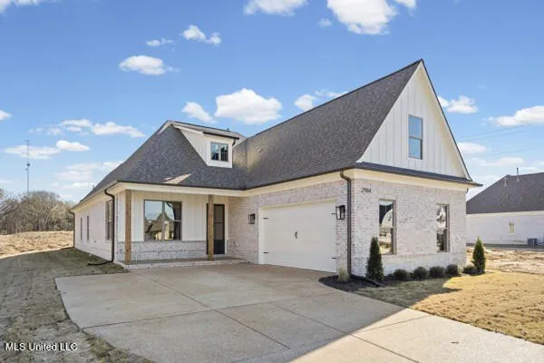 Beautiful new construction 3 bedroom, 2 bath home with bonus room which could be 4th bedroom. Open concept design. Kitchen has lots of cabinets and prep space, quartz tops, tile back splash, and gas stove. Primary suite features coffered ceiling, accent wall, double vanity, soaking tub, and zero entry shower with frameless glass enclosure. Split to other side of home are 2 equal sized bedrooms, bathroom, and laundry. Upstairs is large bonus room with a closet for a 4th bedroom if needed. Enjoy evenings in your screened back porch. You can also take advantage of the community pool. Convenient location with easy access to I-269, I-55, and the Snowden entertainment district. Schedule your appointment today!!