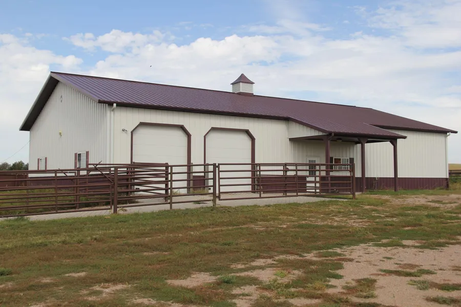 This state-of-the-art facility includes full concrete floor, excellent overhead lighting, with lab or hot house. The curved cattle tub leads to two alleys and chutes, each designed for specific work related to artificial insemination of cattle. Outside facilities are excellent welded pipe chutes, pens, alleys. 18 individual pens to the northwest each include 200 foot concrete bunk with the automatic waterers in the fenceline.