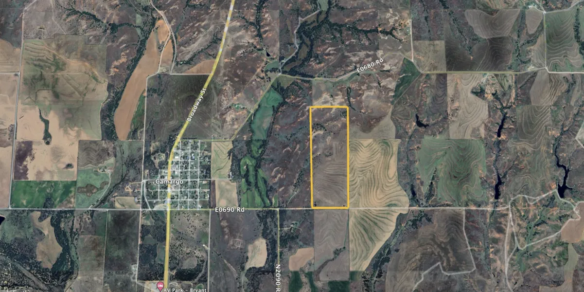 LOCATION: From Camargo, drive east 1 mile on EO690 Rd to the SW corner of the property.
