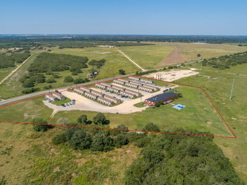 This income-producing property potentially stands to benefit into the future. Built in 2014, this compound consists of 20 - 18x76 ft. lodge buildings with 5 rooms per building. Each studio room has its own bed, recliner, bathroom, closet, TV, and wireless internet. City of Cuero water and sewer for all buildings. In addition to the housing, there is a commercial kitchen, office building, large dining area with lounge area, open dining room, laundry rooms, lounge and guest media/office area, exercise room, and outdoor basketball court that is lighted and lo...