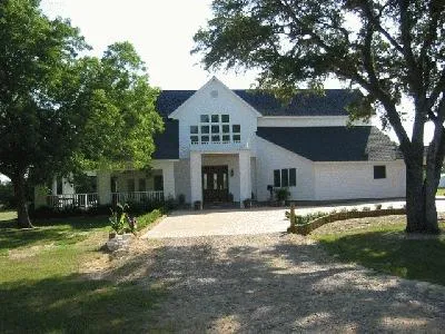 Beautiful 2-story (approx. 2800 Sq. ft.)country home, built in 2001 (Hardy Board siding on slab). Wrap-around porch, deck, lg. island kitchen w/ stainless appliances & marble countertops,lg. pantry & storage area, breakfast area, living room w/rock FP. Lg master Bed/bath downstairs, study/2nd BR & 1/2 Bath. Lg upstairs Bed/Bath. Bunkhouse apartment upstairs over 2-car garage. 3 CAH units. Live & post oak trees, native grass, water well, lg stock tank, cattle pens, 50'x60' metal bldg. cross-fenced.