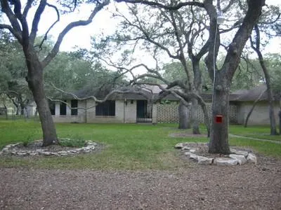 3/2 Brick Home, 2 FP, formal living & dining, den, breakfast area, library, office, ceiling fans w/decorative light fixtures, lg. utility room, 2-car detached garage w/workshop, shelving, storage, & freezer space, landscaped yard, 200+ lg. oaks, 2 water wells, sprinkler system, backyard landscaped and lit for entertaining, 2 concrete patios w/concrete walkways, swing, guest/craft house, lg. storage building, outdoor fire pit.