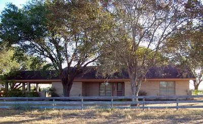 Three bedrooms, two baths,CAH, breakfast area, huge utility room with desk and lots of cabinets, chain-link fenced back yard, storage building on a slab, oaks, coastal, jiggs, two water wells, pens, barns with feeding & water troughs. Two-car attached carport. Some royalties.
