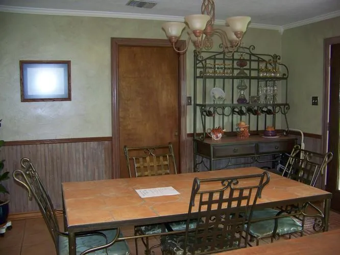 Beautiful, large 4 bedroom, 3.5 bath brick home located on 31.29 tree-covered acres just outside city limits, yet very secluded. Large living/dining/family room with center, circular fireplace. Kitchen with breakfast area. Two-car attached garage. Barns, riding arena. Contact for more details.