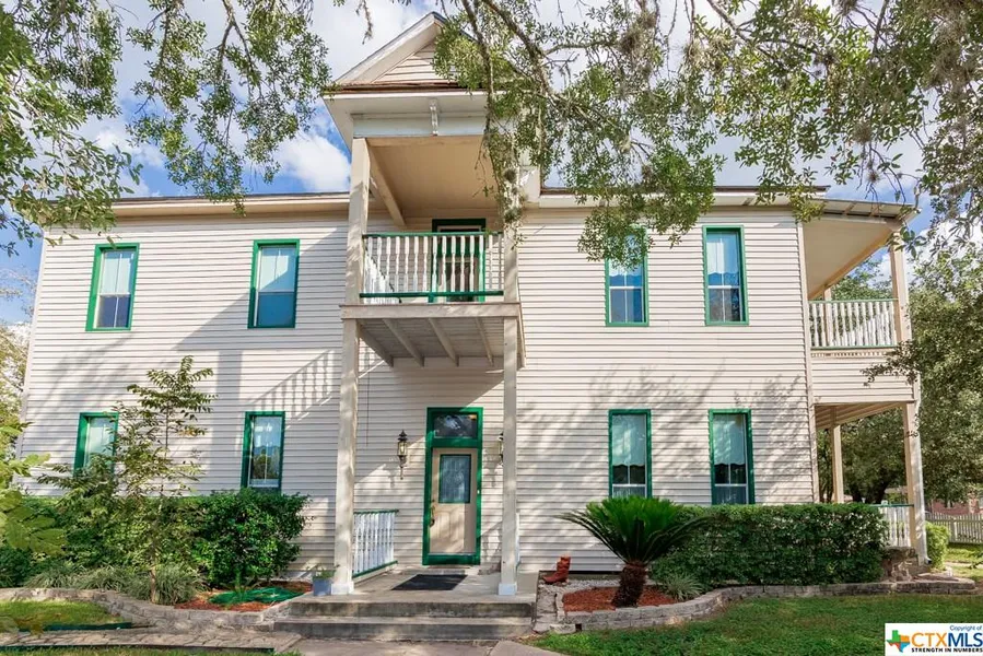 Built in 1920 and beautifully remodeled in recent years, this historic Victorian style home sits on a large corner lot and includes nearly 4,000 square feet of living space. Once owned by Sheriff Thomas M. Stell, beloved Texan and one of DeWitt Countys most well-known men, the property is considered by many as a true Texas landmark. The upstairs theater is complete with seating from Victorias Playhouse Cinema, while most of the other furnishings are available to purchase with the sale of the property. With 10-12 ceilings throughout and countless updates, this home features formal living and dining rooms, a double wood-burning fireplace, an upstairs office space, and bathrooms that include separate showers, marble and subway tile. Renovations were completed with efficiency by including two central HVAC units with smart thermostats, an updated electrical system and new light fixtures, and two water heaters and a water softener. Surrounded by attractive landscaping and located a short distance from schools and Cueros historic downtown, this property is a rare-find and a must-see!