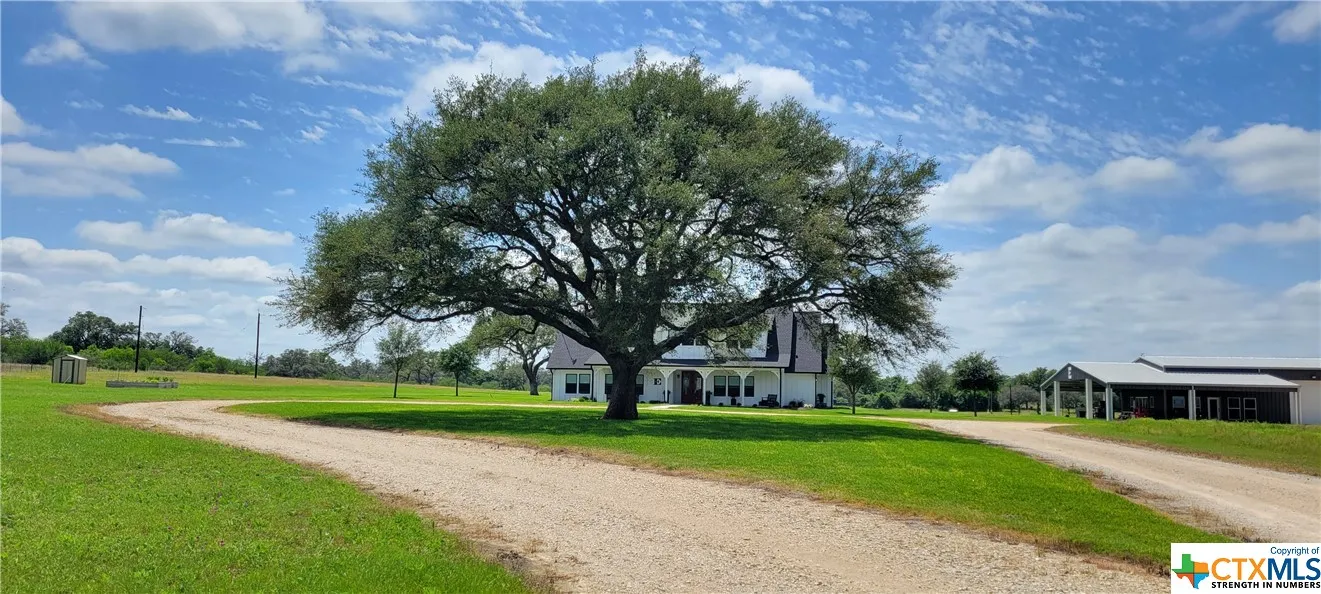 Absolutely beautiful property, a rare find in the area. Has it all, gorgeous new custom home, fenced-in pool, shop, acreage, and stocked pond with a building with 1/2 bath. Every detail was attended to when creating this 1 of a kind home. Has 5 bedrooms and 3 baths on the first floor and a bonus space and extra large bedroom and bath on the second. 2 on demand gas water heaters, custom and electric shades, 8' doors, 2 water wells, acres of irrigated carpet grass, 2 septics, buried 500 gallon propane tank, commercial water softener are a few of the extra touches that make this place amazing. Smart features throughout the home. The immaculate shop with 1/2 bath has parking for several vehicles plus toys and still plenty room for entertaining. The pool and hot tub are both gas heated as well as the firepit, buried 500g propane tank. Cool decking around the fenced-in pool. The outdoor patio includes a gas fireplace, flat top grill and pellet grill. 2 hrs to SA, Houston, Austin, or CC