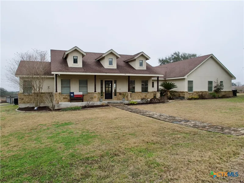 Location, Charm, Country-Living, Close to Town, 24x36 Metal Shop, Acreage, Chicken Coop, and the list goes on!!!! This 2014 four bedroom, two and a half bath home with an upstairs bonus room checks every box on the list. It is located just a few miles south of Cuero, Tx and sits on 2.5 acres on top of a hill that gives you a picturesque view for miles. If sitting on the back patio with your favorite beverage and watching the sunrise or sunset is YOUR thing, look no further. This custom home has all granite countertops throughout with a large island bar in the kitchen, a breakfast area and a formal dining area. The HVAC was replaced in October of 2023, new hot water heater and water softener in June of 2024, new carpet in 2024 and new fence in 2022. The shop has all the room you need for storage, a man cave or a side hustle. Come check out this little piece of heaven on Earth!!