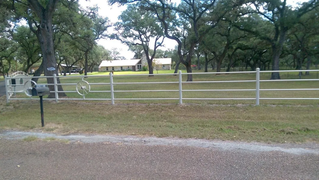 Beautiful large, 1.5 story rock home on 19+/- sizable Live Oak-covered acres. Three bedrooms, two baths w/walk-in showers, nice-sized loft w/carpet, generous kitchen and dining area (all stainless appliances stay - 1.5 years old), spacious living area w/wood burning fireplace and loft ceiling. Custom shutters, tile and wood laminate floors, utility room. Two electric CAH units (average electric $200/mo.), covered patio, stone patio in back yard under huge Live Oaks. Metal roof, two-car attached garage (w/one side electric opener), paved driveway, electric security gate. Luxurious chicken condo coop with predator-resistant pen. Very clean and organized out-sized 30X40 workshop on slab with shelving and a 1/2 bath with a separate septic system; and a 12X40 attached shed in front and a 12X40 attached shed in back, cattle pens with chute, cross- fenced, and two stock ponds.