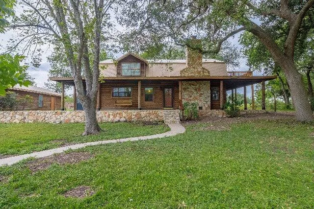 Nestled far off the road under majestic trees is a custom and spacious Log cabin home! Beautiful pastures, fenced and cross fenced and ready for livestock this 20+/- acres is ready to welcome you home! The home features amazing charm with open wood beams, rock fireplace, spacious country kitchen and full wrap around porch to enjoy the peaceful setting. Look out onto the pastures, pond, pecan orchard, barn and more. Enjoy the wildlife and peacefulness. Over sized 3 car garage with office and full bath!