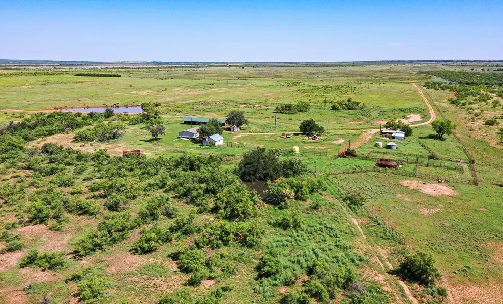 The native pasture portion of the property is cross fenced into four pastures. A prominent seasonal creek meanders through the east-central part of the ranch for approximately 2.5 miles, draining the majority of the ranch. The creek bottom is attractive with scattered cottonwoods. Hackberry and chinaberry groves are found scattered through the eastern portion of the ranch. An area of shinnery with large shinoak motts is found in the southern portion. Other desirable trees and brush species include mesquite, cedar, sumac, wild plum thickets, lotebush, ephedra, etc. With conservative grazing practices and recent rainfall, the turf of native grass is in excellent condition.