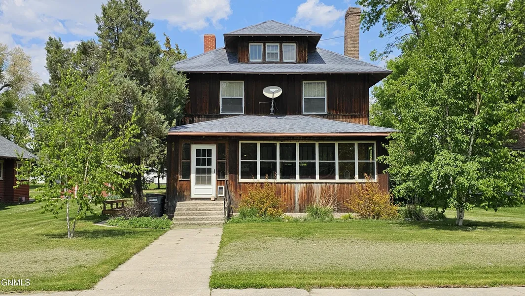 Historic home with lots of potential. 2.5 story home with a walkup attic. Attic is unfinished, but has potential. Large lot with room to add a garage if desired. Full wall fireplace and book case on the East wall of the living room. Three bedrooms and bath on the second floor. The Electrical and heating have been updated. Electric hot water boiler, 200 amp breaker box. Right on Main Street just a couple blocks from downtown. Cool feature is a balcony off the NW room on the second floor. Full basement poured concrete, even support walls inside are poured concrete. Check this one out for historic character.
