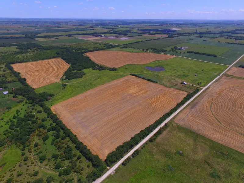 This parcel totals 158 acres more or less with FSA records showing 94.03 acres of cropland. The balance of the property is a mix of pasture, brome hay meadow, and pasture. The majority of soil type in the tillable portions of this property is Irwin silty clay loam. This property has electric service and a water-well on the west side and pond just to the east.
