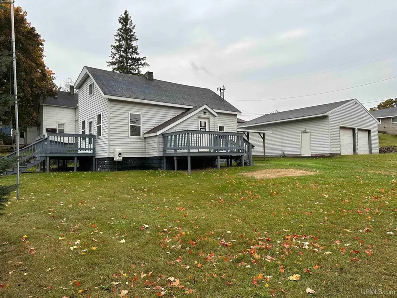 Home shopping just got easier! Consider this 3 bedroom 1 bath Cape Style home featuring a spacious corner lot, super sized detached garage with workshop area, 2 decks, and a full basement. This wonderfully updated home features an Island Kitchen with snack bar, new appliances, main floor bath, new flooring throughout 1 main floor bedroom and 2 upper bedrooms. Could this be your new home? This is a Fannie Mae Homepath Property.