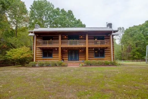 Beyond the gated driveway is a custom built TN Poplar Log home will bring you to your own slice of heaven~Red Oak Hardwood flooring~solid mahogany interior doors~solid wood cabinets~6 fireplaces~pond and creek~sep 2200sqft living quarters apt available above the 3 car detached just needs to be finished out~built by a legendary country musician~so come and enjoy your private retreat