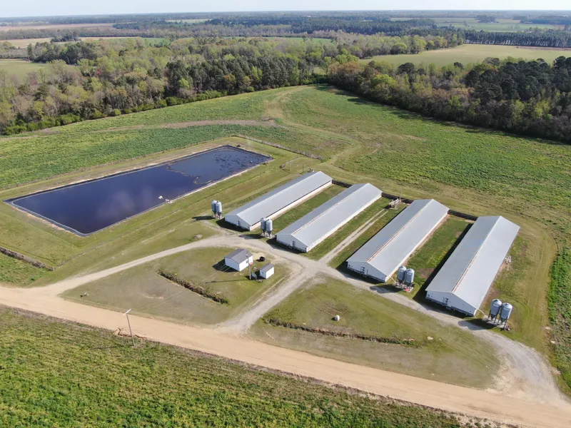 Fully turn key commercial swine operation with four (40ft x 190ft) finishing houses, office building (20ft x 20ft), 1.3-acre lagoon, and 20 acres of agriculture land available for immediate income potential just below the NC/SC state line. Rare opportunity to own and operate a fully, turn key commercial swine operation with 3,520 head capacity. Operation has everything you need to grow out hogs from juveniles to maturity. There is a current grower contract in place with Smithfield Foods for multiple rotations of animals each year. Operation is less than 13 years old and has modern technology from one end to the other with modern conveniences for the 21st century hog farmer. The houses are temperature controlled with a natural airflow cooling system with thermostats and two fans per house to keep the pigs cool in the summer and warm in the winter. These units have an automatic watering system fed by two deep water wells and a unique automatic feeding system with two talon feed bins per house that feed on both sides of houses. Operation comes with a completely-lined 1.3 acre lagoon and waste management system to store and then deploy effluent onto the spray fields with a high capacity pump and spray head reel system. The 20+/- acres of spray fields are currently being cultivated with a rotation of soybeans and corn to fuel the hunter looking for a place to shoot a limit of doves or bag a trophy turkey or whitetail buck when not tending to the four-legged detainees. This operation has a current contract with Smithfield Foods where they provide all the feed and the hogs for growing out to maturity and growth payments. The contract also provides payments to the grower with other aspects of the operation including, vaccinations, utilities, and pay during idle periods. Two other structures are on site including a 20ft by 20ft office and a smaller pump house.