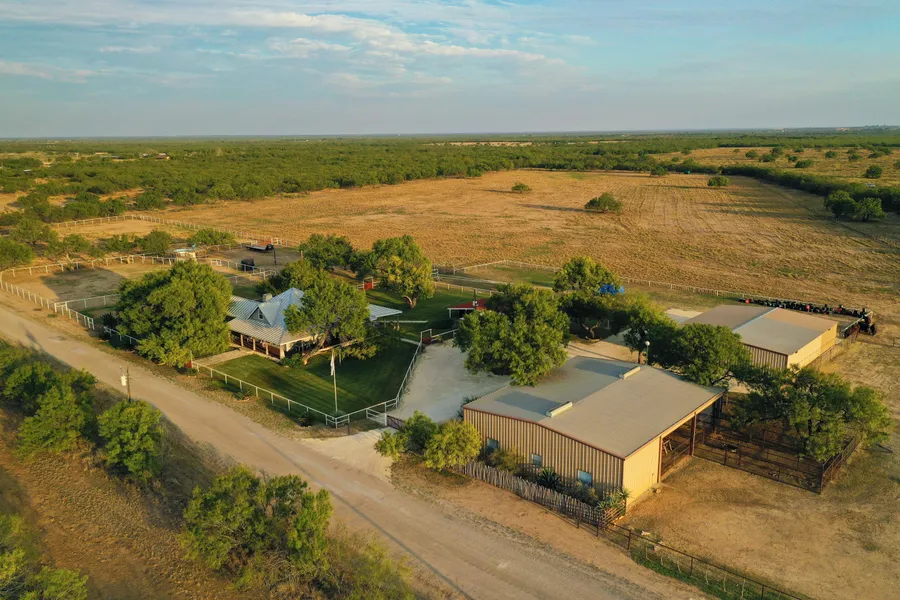 Improvements: The charmingly updated main house is 2,308 s.f. and has 2 bedrooms/ 2 bathrooms, a loft, large living room, kitchen, wrap around porch and a covered outdoor living area with a wet bar and built-in fireplace. The 3000 s.f. barndominium has 1,344 s.f. of living space with 2 bedrooms, 2 bathrooms, living area, full kitchen, connected horse stalls and plenty of storage space. A 2,880 s.f. 2-sided barn is set up for outdoor group entertaining with built in lighting and fans. There are 2 additional 1 bedroom/1 bathroom houses that can be used for foreman, hunters, renters or guest houses. Other improvements include 3 dog kennels, a chicken coop, a Pila pool with a 360 degree sunbathing deck and several storage buildings. There is a nice set of cattle pens located nearby.