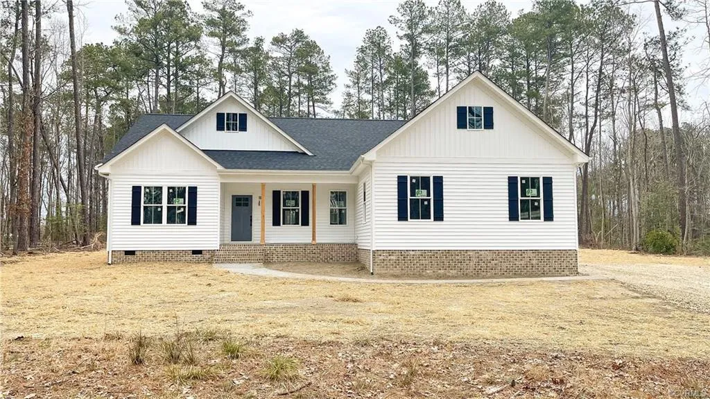 NEW CONSTRUCTION RANCHER IN DINWIDDIE COUNTY ON OVER 2 ACRES!!!! This Home features 3 Bedrooms & 2 Full Baths w/ Lots of Custom Upgrades to include Farmhouse Style Trim. It is Close to I-85 & 15 Minutes to Fort Lee. Upon Entering this Home you will notice 9 ft Ceiling Heights, as well as the Luxury Vinyl Plank Flooring that flows throughout the Open Concept Kitchen/Family Room! The Kitchen has White Cabinetry, Hood Vent, Large Center Island w/ Granite Counter Tops, Stainless Steel Built In Appliances, Pantry Cabinet as well as a Separate Walk In Pantry. The Master Bedroom has a Large Walk In Closet as well as an En Suite Bath. The Master Bath displays a Double Vanity with Accent Shiplap Wall, Ceramic Tile Flooring and a Custom Tile Walk In Shower with Seat. The Additional 2 Bedrooms are Very Spacious. There is a Guest/Hall Bath w/ LVP Flooring, Tub/Shower Combo and Shelving for Extra Storage. The Laundry Room has a Coat Closet and there is a Mudroom off of the Garage. The Attached 2 Car Garage is a Side Entry Garage with Pedestrian Door. Outdoors there is a Large Back Yard with Rear Deck and a Concrete Front Porch.