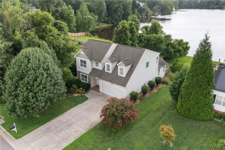 Waterfront living at an affordable price? Yes Virginia, it does happen!! This waterfront house on Jordan Lake, located in the waterfront community of Lake Jordan, is just waiting for you to call it HOME! Open the door and notice the wood floors which draw you in to the home. Right away you will see the living room flanked by French doors - perfect for privacy and a home office. Continue by the dining room and then into the spacious kitchen, which features beautiful stained cabinetry, granite countertops, walk-in pantry, and a center island with bar seating. The family room offers a vaulted ceiling and tons of windows, allowing the natural light to stream in. Open the door to head to the deck and just imagine the days you will have enjoying this view!! On the second floor you will find a spacious primary bedroom, with offers TWO walk-in closets, and a roomy bathroom with dual vanities, soaking tub, separate shower and water closet. Three additional bedrooms and a second floor laundry complete the second level. Lake Jordan offers community amenities including a pool and beach for summer enjoyment, along with a playground, basketball and pickleball courts. If you work at Fort Gregg-Adams, it's a quick fourteen miles to get to the installation! Make sure this home is on your must-see list!!