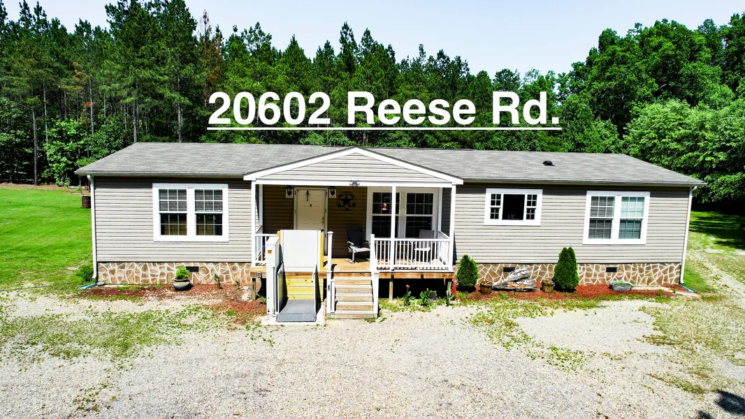 Welcome to 20602 Reese Rd., a ranch style home tucked away on a large acreage tract, providing the tranquility and serenity that only true country living can offer. This 2018 home offers 3 spacious bedrooms and 2 full bathrooms (the Master BR and BA is a must see to appreciate!) Enjoy preparing home cooked meals in the large kitchen, while using the stainless steel appliances, and extra countertop and cabinet space provided by the well positioned island. Retreat to the backyard screened in porch to enjoy your coffee while listening to the sounds of the wildlife waking up each morning. For the animal lovers, there are fences, shelters, and several outbuildings already in place for your furry and feathered friends. Reese Rd. provides access to an attractive area with a solid country atmosphere. Lot 1 is a mostly wooded tract tucked away and in the midst of large farm and timberland propert...