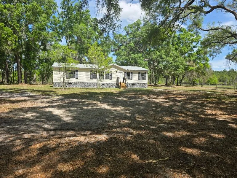 LIKE NEW! TOTALLY RENOVATED! This spacious, split/open floor plan, 3 BR, 2 bath 2001 manufactured home has received many, many new upgrades. Step into the large open living room to a view of the inviting airy kitchen/dining room. Kitchen features NEW SS appliances, NEW kitchen counter tops with NEW SS sink/faucet, Spacious bedrooms with walk-in closets, Master Bath features garden tub, separate shower and NEW double vanities/sinks, NEW flooring throughout the home, NEW light fixtures, NEW toilets, NEW guest vanity & bathtub, marble windowsills, NEW HVAC System (2025), NEW window screens, NEW steps and Metal Roof (2017). To many extras to list. Home is situated on FIVE GORGEOUS, fully fenced/gated acres with large oaks and palms scattered throughout the property on a dead-end street with NEW well house & well tank. Centrally located for an easy commute into Old Town or Cross City. A Newly...