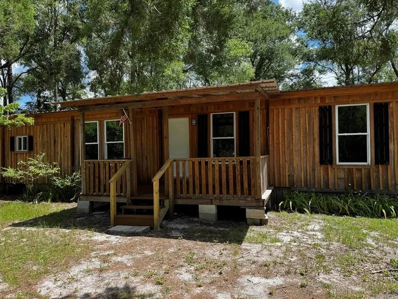 Refurbished 2 bedroom mobile home w/addition nicely situated on 1 acre. This home has been tastefully restored with beautiful wood boards inside and out, including new flooring throughout!! A new mini split a/c - heat unit was installed in the family room. The home has a utility/laundry room and an additional storage/hobby room. There is a nice enclosed carport/shop and pump house with a 4" well and water system. Call Now to see this opportunity!!