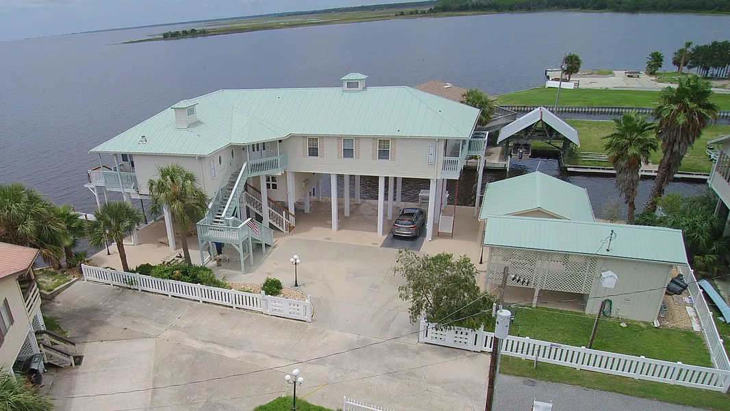 also has deep channel that runs by 2 sides of lot & offers drive up boat access. Home is built w/Bridge Pilings driven into bedrock. Quality construction which exceeds