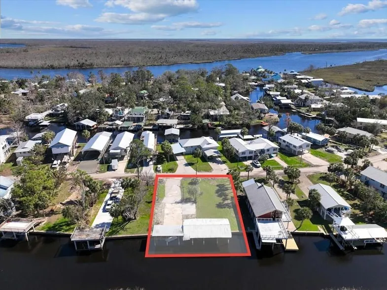 Situated on a deep-water canal leading directly to the Gulf of Mexico, this stunning property offers two spacious lots with breathtaking sunset views! Perfect for outdoorsmen or those seeking the Gulf Of America life, it features a cement slab with two RV hookups (110-amp panels), city water and sewer, and an immaculate irrigated lawn with mature banana and fig trees. A covered boat lift with four lifts ensures ample space for you and your guests, and within five minutes, you'll be cruising the Gulf's open waters. Whether you're fishing, kayaking, or simply enjoying the peaceful waterfront community, this property is a true coastal oasis. With space to build one or two dream homes, this rare opportunity won't last long. Call today to make it yours!