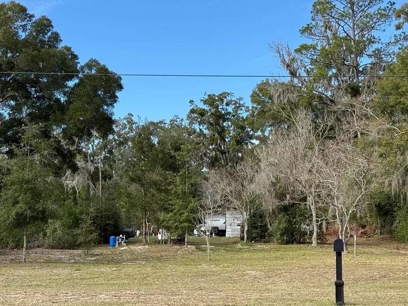 READY TO GO HOME SITE or RV RETREAT - TURN KEY READY RV HOME PLACE. This HIGH AND DRY 1.0 acre corner lot has a current RV permit for simple and pleasurable "RV living." Bask in the warm sun or cool shade on this beautiful property with a nice mix of mature trees and open space. It includes a 2023 18ft Sun Lite travel trailer (rebuilt title but fully functional - RV included, but can be left out of transaction). The RV pad is complimented with a fully covered outdoor kitchen. There is a 12x16 finished outbuilding, along with a 12x14 shed, and small toolshed/workshop. There is a large fenced area on the back property with a chicken coup - seller willing to convey some chickens. This area would also make a safe haven for pets, etc... Along with being a turn-key RV set up, the location lends convenient proximity to a world of outdoor recreation - Suwannee River public boat ramps minu...
