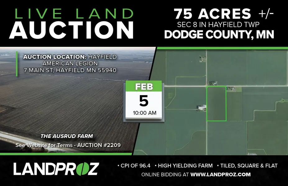 This farm is as good as it gets. It has an excellent CPI of 96.4 and across this 75 +/- acres there are only 2 soil types; Wow! The farm is tiled and is square and wide open for todays big machinery to plant and harvest efficiently. This is the kind of land you want to own; it will never let you down when it comes to crop production. Always top yields and a joy to own and farm, whether being an investor adding to your portfolio, or a farmer looking to expand your land base.