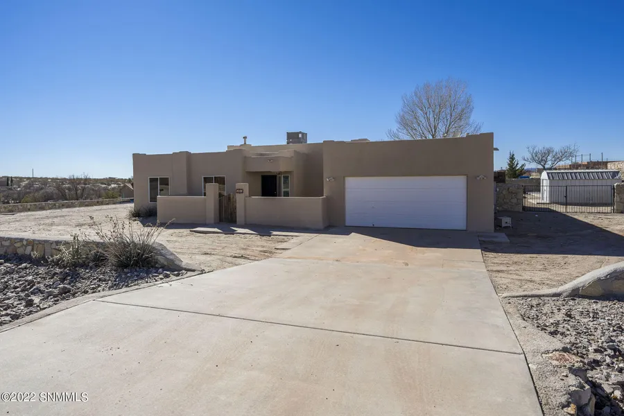 Beautiful Southwestern home offers 4 Bedroom, 3 Bath, 2,284 square feet of living space, 2 car garage, RV Access, and mountain views. Enter through the enclosed courtyard to this warm inviting home. The large Great Room features perfectly flowing living areas, tile floors, and a fireplace. Kitchen is equipped with black appliances, spacious custom wood cabinetry and counter space, pantry, eating area, skylight, and a breakfast bar. The generously sized Owner's Suite has carpet, ceiling fan, walk-in closet and large Bath. The En-Suite Bath features double sinks, tile floor, jetted garden tub, skylight, and stall shower. Guest Bedrooms are larger proportioned with carpet in one and wood laminate floors in the other two Bedrooms. Exterior is perfect for enjoying the weekends with your love ones or hosting fun gatherings. The enclosed backyard has a covered patio, storage shed, and fire pit with stone seating. Awesome Organ Mountain views. Come experience all the amenities this property has to offer.