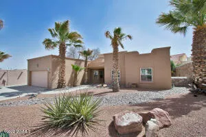 Immaculately maintained 3 BDRM + 2 BATH home located in the El Mirador Subdivision in Santa Teresa, NM! This home features: REFRIGERATED AIR, recessed lighting throughout, formal dining room, hardwood flooring, plantation shutters. Familyroom with vaulted ceilings, tons of natural light, fireplace that serves as the focal point. Kitchen dining area with beautiful picturesque windows, opens to kitchen with elongated large island, granite countertops, tons of raised panel cabinets, large utility room. Masterbedroom suite with access to backyard. Master bathroom oasis with jetted tub, separate walk in shower, granite countertops, dual vanity, walk in closet. Backyard straight out of HGTV with flagstone walkway, covered and open patio, access to golf course located behindhome, plus much, much more!