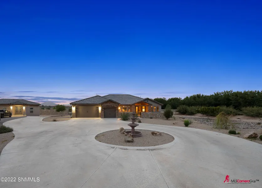 This gorgeous home is country living at its finest! Sitting on 2 acres and only minutes away from Historic Mesilla, this nearly 3000 square foot home + 1328 square foot detached shop/casita provides you with the comfort and space you've been looking for. The main home offers 4 bedrooms + an office and an oversized 3-car garage. Interior amenities include tile throughout, a soft water system + RO, and smart home capabilities. The backyard is an entertainer's dream with a large tile patio, swim spa w/ pergola, and gorgeous views of Picacho Peak. The entire property is surrounded by a rock wall and the front driveway and parking areas provide ample storage opportunities for trailers, off-road vehicles, or RVs & boats. An additional +-1328 heated & cooled space can be found in the detached shop, which could easily become a casita. The shop was tastefully completed to match the aesthetics of the main home with its finished stucco and tile roof. The space is equipped with a 1 bath and is plumbed for a full kitchen.