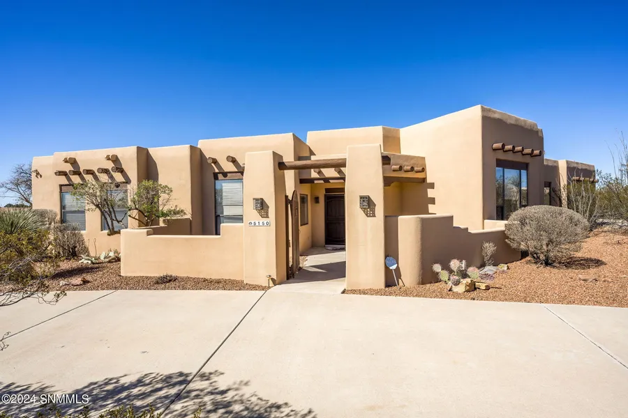 This is a stunning custom-built Southwest-style home located on a one-acre lot in the sought-after Las Alturas Bellas Subdivision. The property features 2,979 square feet of living space, with 3 Bedrooms and 3.5 Bathrooms, as well as a 3-car garage with a 30-foot-deep travel trailer garage. As you approach the home, you'll be greeted by a circular driveway that leads to a walled courtyard entry with wood beam accents. Inside, the spacious Living Room boasts a Kiva-style fireplace, wood beam accents, and mountain views. The Kitchen is well-equipped with granite countertops, a large island with a prep sink, and a WOLF gas stove. This area is open to the Formal Dining Room which also has wood beams and mountain views. The Primary Suite is quite large and features tile floors and a double-sided fireplace that leads to the En-Suite bath with a jetted tub and shower stall. The home has a split...